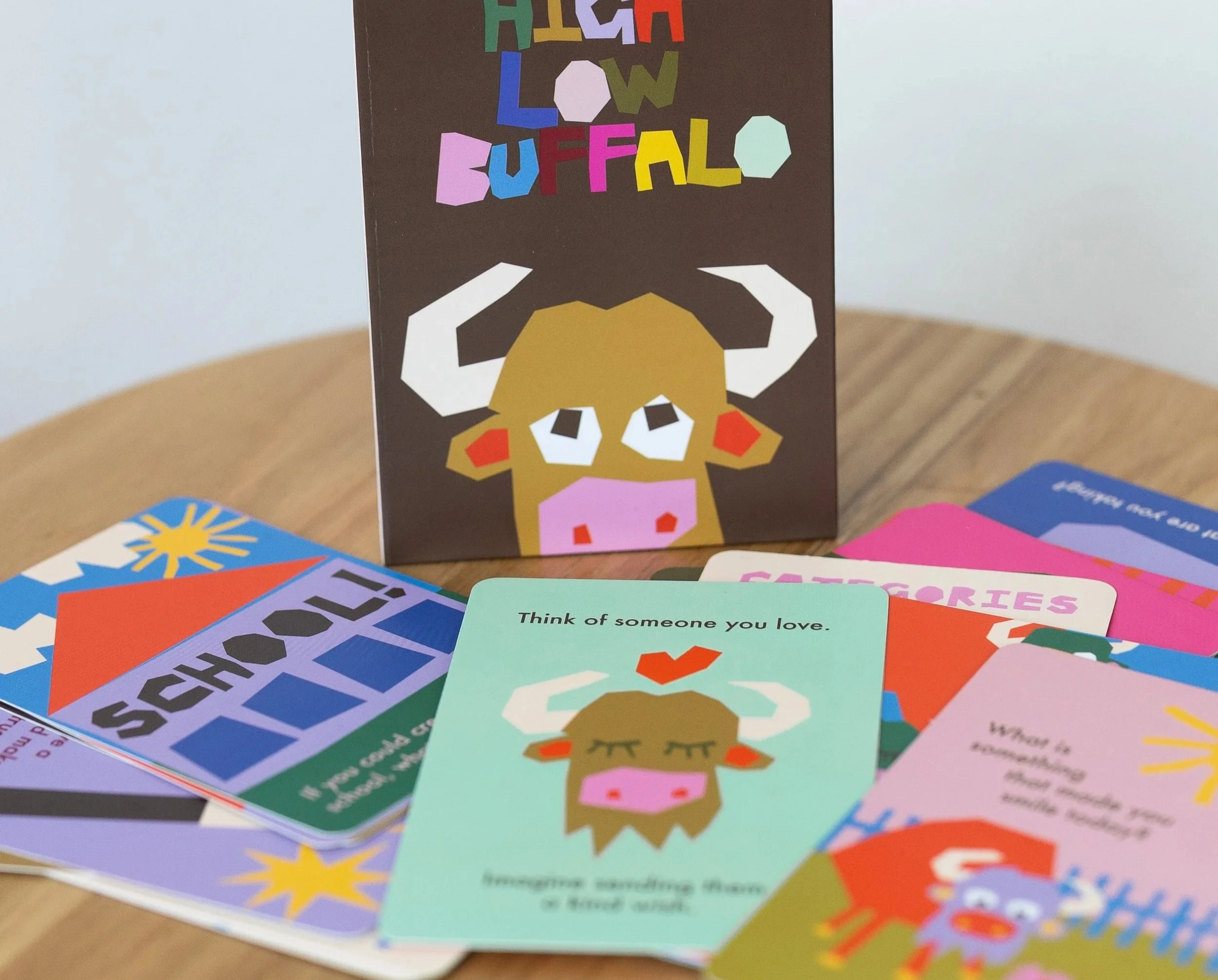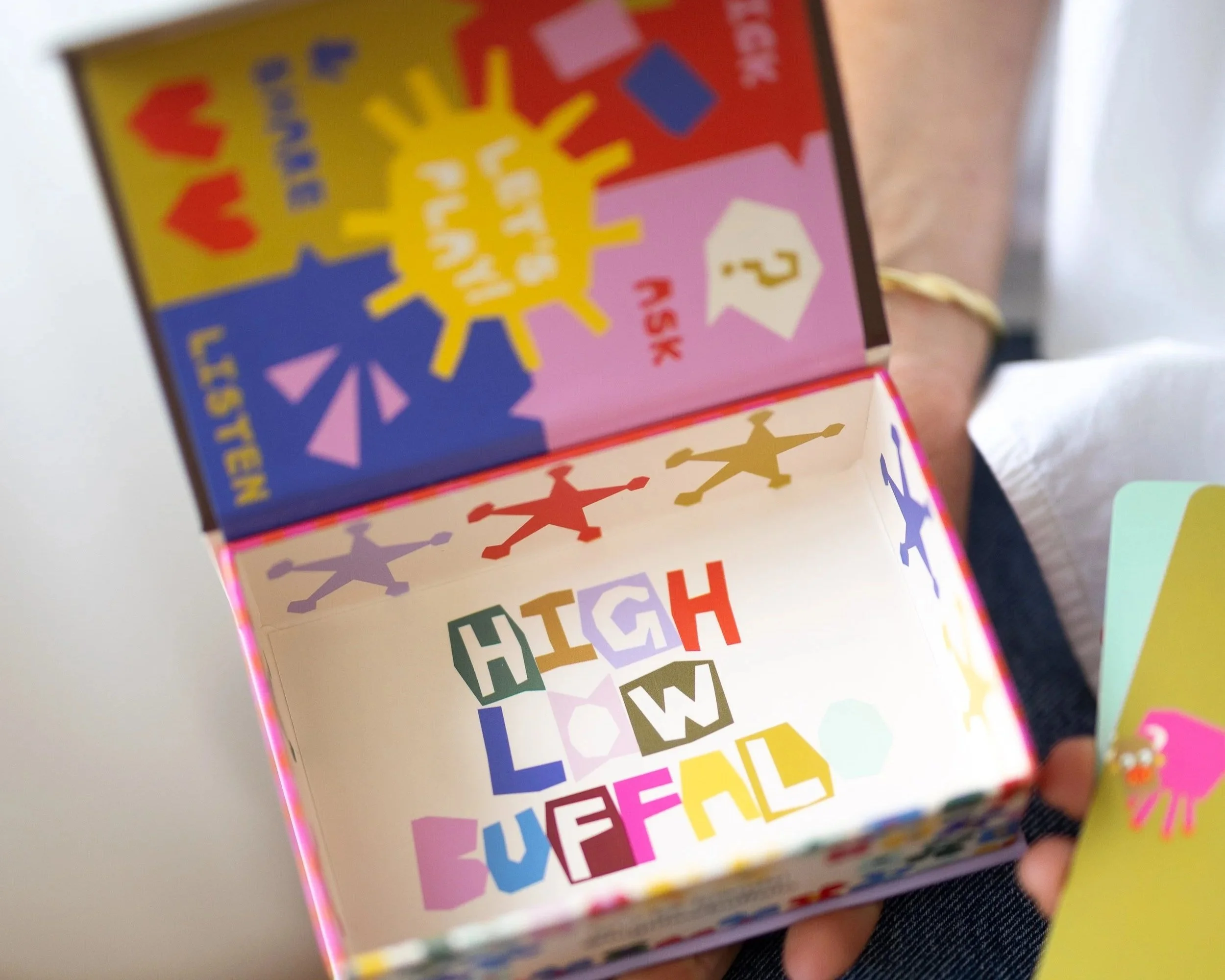 Created for parenting education powerhouse Gen Muir, High Low Buffalo is a playful pack of connection cards designed to help busy parents make big and meaningful connections with their little ones.